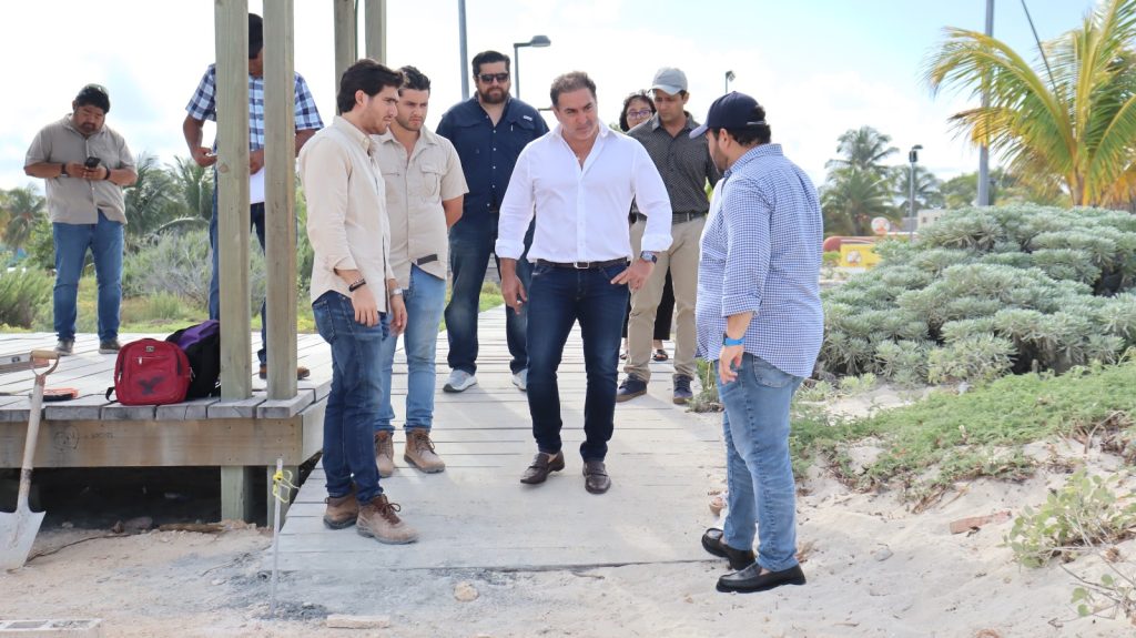 Progreso, Yucatán a 23 de noviembre de 2023. Desde el mes de octubre de este año, el Ayuntamiento de Progreso está trabajando en la construcción de una cancha de basquetbol en la playa del malecón internacional, en ese sentido, ayer el alcalde Julián Zacarías Curi realizó una supervisión a dicha obra, la cual tiene un 35 por ciento de avance.