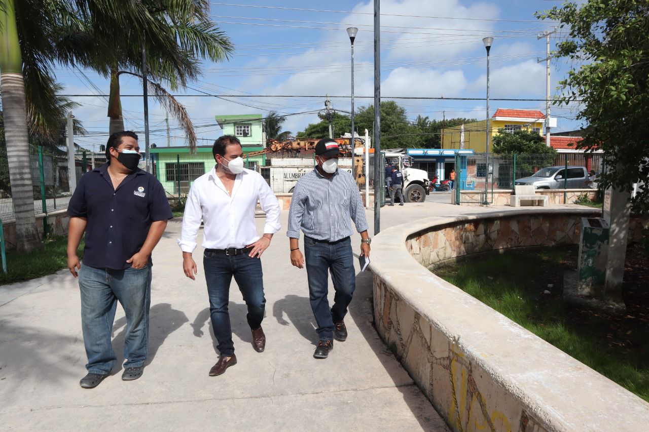 “Hasta el momento en este sector de la ciudad ya se atendieron las zonas aledañas como el Fraccionamiento Brisas del Sol, la avenida Víctor Cervera y la calle que lleva al libramiento hacia Mérida, por lo que continuaremos estas acciones con la rehabilitación del parque en su totalidad, además de brindar más servicios públicos en las calles cercanas”, señaló Zacarías Curi.