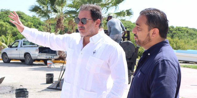 Progreso, Yucatán a 21 de julio de 2023. Con la intención de que esta temporada vacacional, todas y todos pasen un Verano al 100, el alcalde Julián Zacarías Curi, acompañado por el titular de la Dirección de Servicios Públicos, Canan Góngora y el comisario de Chelem, Andrés Cutz, supervisaron de primera mano los trabajos de rehabilitación en esta comisaria.