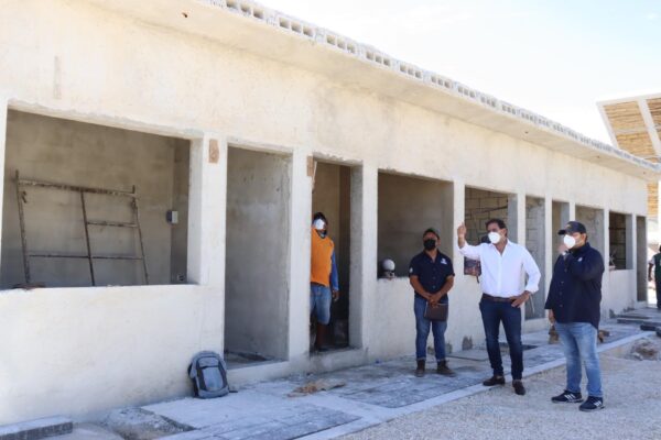 Progreso, Yucatán a 22 de junio de 2021.- Cumpliendo el compromiso de dotar de espacios a los comerciantes de la comisaría de Chicxulub Puerto, esta mañana el alcalde de Progreso Julián Zacarías Curi acudió a dicha localidad para supervisar el avance de la construcción de los locales que complementarán las obras de renovación de la plaza y mercado que se realizó a través de la Secretaria de Desarrollo Agrario, Territorial y Urbano (SEDATU).