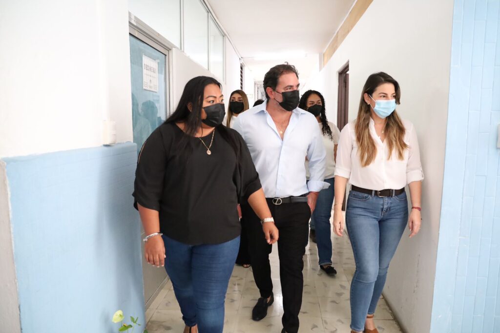 Progreso, Yucatán 22 de marzo de 2022.- El alcalde de Progreso, Julián Zacarías Curi, supervisó esta mañana los trabajos preventivos de restauración en la Unidad Básica de Rehabilitación (UBR), en compañía de la Presidenta Honoraria del DIF, Alma Gutiérrez Novelo y autoridades municipales.