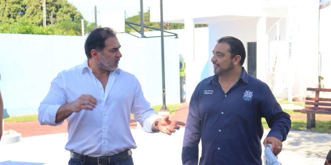 Progreso, Yucatán a 15 de diciembre de 2022. Esta mañana, el alcalde Julián Zacarías Curi acudió a la zona oriente para supervisar los últimos trabajos de rehabilitación del parque “Cházaro Pérez”, el cual, destacó el edil, también tendrá un espacio amigable para las mascotas.