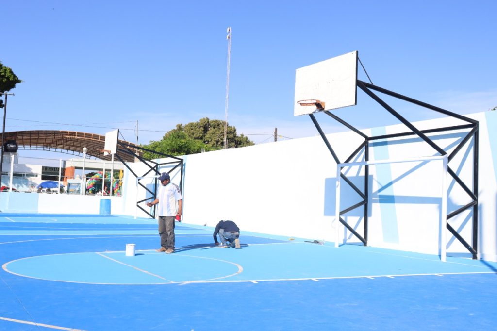 En la supervisión, lo acompañó el titular de Servicios Públicos y Ecología, Canan Gómez Ortegón, quien le explicó que el personal trabajó en la construcción de una barda del lado norte del parque y se encuentra aplicando pintura en toda la cancha multifuncional, así como a las gradas.