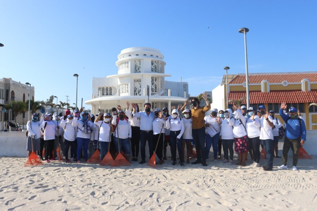 Progreso, Yucatán a 18 de abril de 2022.-Esta mañana el alcalde de Progreso, Julián Zacarías Curi acompañó a los 33 elementos del Programa de Limpieza de Playas y Ciénegas, en su labor por conservar las zonas costeras del puerto libres de residuos sólidos y contaminantes.