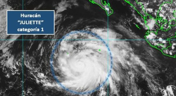 Hace unos momentos la tormenta tropical Juliette se convirtió en huracán categoría 1 en el Océano Pacífico, se localiza al sur-suroeste de Cabo San Lucas, B.C.S., sus desprendimientos nubosos reforzarán el potencial de lluvias en el occidente del país.