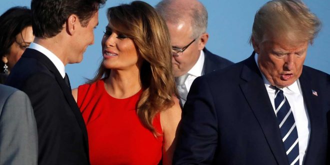 En una secuencia fotográfica del momento captada por la agencia Reuters da la impresión que la esposa del presidente Donald Trump y el primer ministro canadiense pecan de afectuosos, en medio del ajetreo del resto de los participantes.