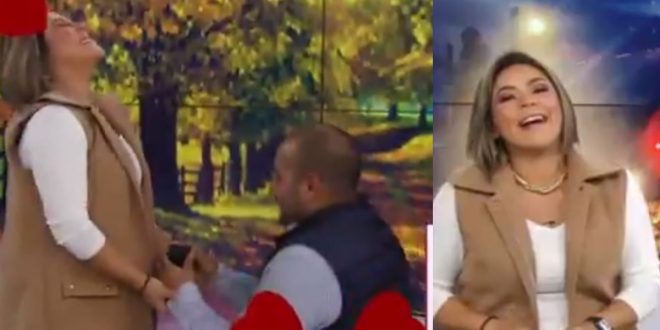 Con lágrimas y totalmente conmovida, la conductora recibió a su pareja, quien se arrodilló frente a ella y le dio el anillo al momento en el que le dijo la frase: “¿Quieres estar conmigo toda la vida?”.