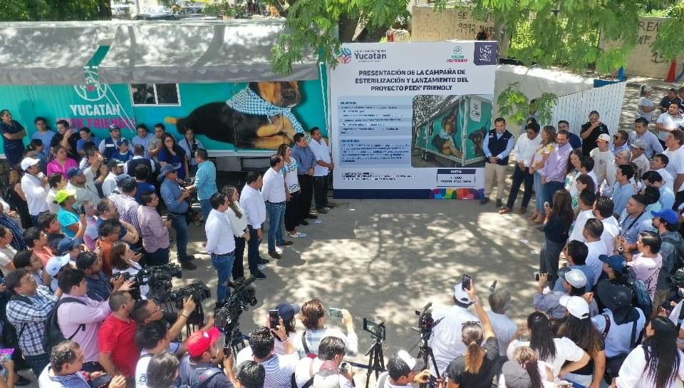 KANASÍN, Yucatán a 14 de agosto 2023.- El gobernador del Estado, Mauricio Vila Dosal, y el alcalde Edwin Bojórquez Ramírez pusieron en marcha una campaña de esterilización y dieron a conocer el proyecto “Peek’ Friendly”, cuyo fin es promover el bienestar animal, garantizar su protección integral, así como reducir la población canina en situación de calle, además de implementar programas de esterilización y promover la adopción responsable.