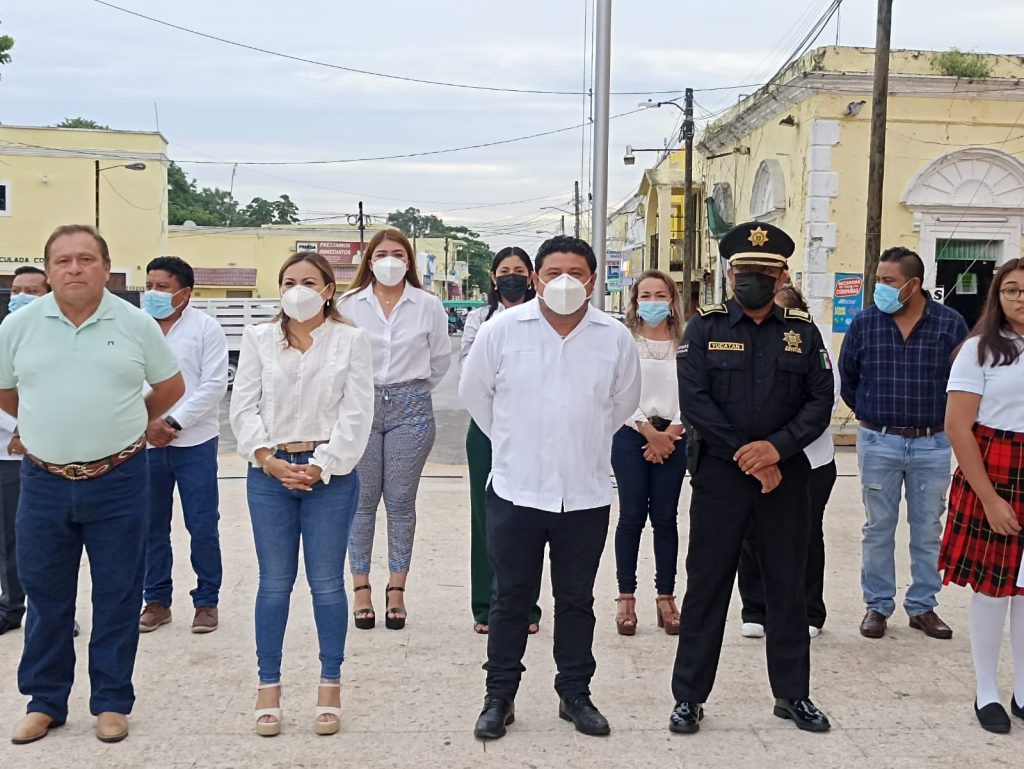 Ante los regidores del Cabildo, así como maestros y padres de familias asistentes que participaron en los honores a la bandera que se realizó en los bajos del palacio municipal, el alcalde hizo un llamado a continuar trabajando juntos en la transformación de Kanasín.
