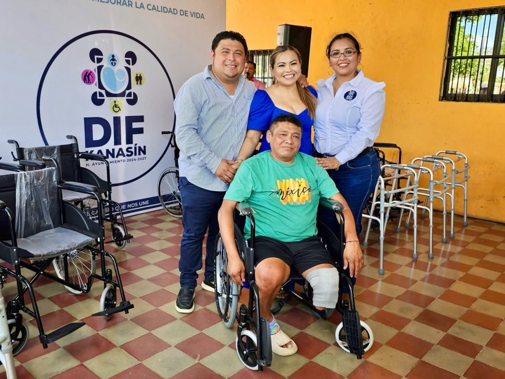 KANASÍN, Yuc., 06 de abril 2025.- En la búsqueda de construir un municipio más incluyente, el DIF de Kanasín entregó en días pasados 21 sillas de ruedas standard, una silla de ruedas deportiva y cuatro andadores (burritos), lo que contribuirá a una mejor movilidad y traslado de los beneficiados. La entrega estuvo a cargo del alcalde de Kanasín, Edwin Bojórquez Ramírez, así como de su esposa y presidenta del DIF de Kanasín, Raquel Balam Rocha de Bojórquez.