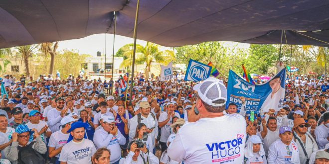 En su intervención, Víctor Hugo destacó que en los últimos tres años, Kanasín ha vivido una transformación nunca antes vista, por lo que invitó a los habitantes del municipio a apoyar a los candidatos del PAN para que los cambios sigan llegando al municipio.