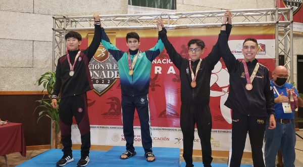 La Paz, Baja California Sur, 24 de junio de 2022.- El karateca Gabriel Galaz Chatón obtuvo para Yucatán una medalla de oro en la disciplina de karate en los Nacionales Conade 2022 que se realizan en La Paz Baja California Sur.
