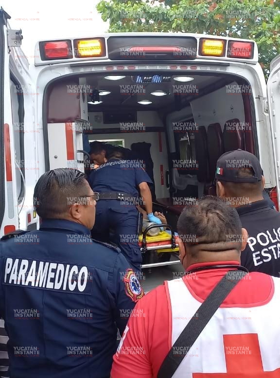 Paramédicos de la Secretaría de Seguridad Pública y Cruz Roja Mexicana llegaron y atendieron al herido de bala que fue trasladado de urgencia al IMSS de la T-1 en la capital yucateca.