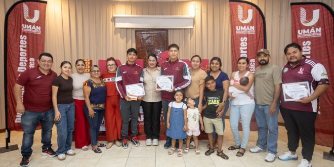 Umán, Yucatán, 16 de abril de 2026.- Con el objetivo de seguir impulsando el bienestar deportivo, la presidenta municipal, Kenia Walldina Sauri Maradiaga, encabezó el primer Abanderamiento de Atletas Umanenses rumbo a la Olimpiada Nacional 2026, donde además se realizó la entrega de reconocimientos y apoyos económicos para viáticos a las y los jóvenes umanenses que representarán a Yucatán en la justa nacional.