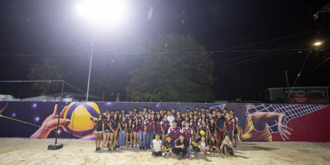Umán, Yucatán, a 29 de diciembre de 2025. — Como parte del impulso al deporte y la convivencia familiar, la alcaldesa Kenia Walldina Sauri Maradiaga inauguró la cancha de voleibol de playa “Mtra. Mirza López Gómez”, ubicada en la Unidad Deportiva Cepeda Peraza, un espacio diseñado para fomentar la activación física y el bienestar de la ciudadanía, así como para honrar la memoria y legado de quien en vida promovió el deporte.
