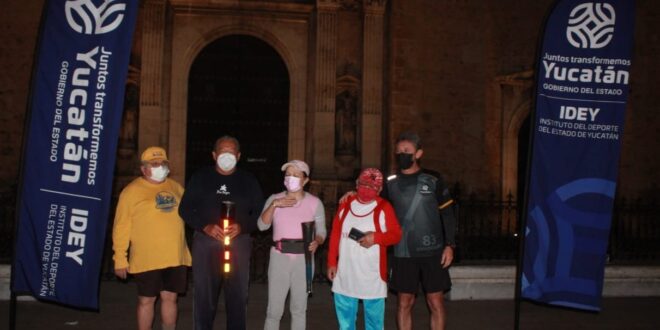 A las 5:00 de la mañana, en la Plaza Grande de Mérida, se prendió la antorcha con el fuego nuevo, que los corredores invitados llevaron por la Calle 60 y Paseo de Montejo, hasta llegar a la Catedral del Deporte Yucateco, encender el pebetero olímpico y comenzar las vueltas simbólicas a la pista de tartán.
