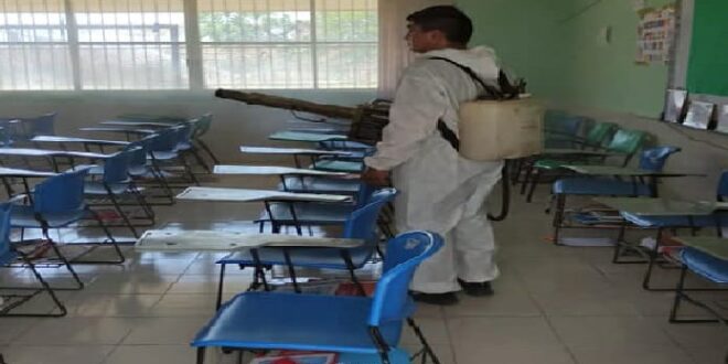 El intendente de dicho plantel educativo quien fue removido de la escuela Mario H. Cuevas donde era director el actual oficial mayor de la comuna Reynaldo C. tuvo que ir abrir la escuela para que la brigada sanitizara toda el área y de esta manera cortar cualquier foco de un brote del mortal virus del Covid-19.