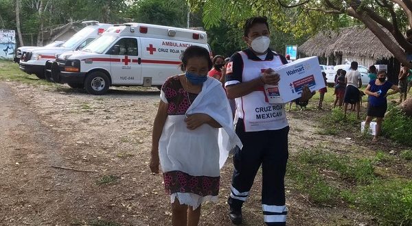 Los voluntarios de Cruz Roja Mexicana en conjunto con personal de la Delegación Valladolid y los comisarios ejidales organizaron la entrega de los apoyos para las familias que viven en una zona que fue afectada por los fenómenos naturales de Gamma, Delta y Zeta en los últimos meses.