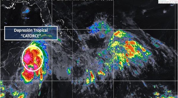La Depresión Tropical 14 ha disminuido ligeramente su velocidad de traslación a 6 km/h, lo que significa que avanza de manera lenta con dirección norte.