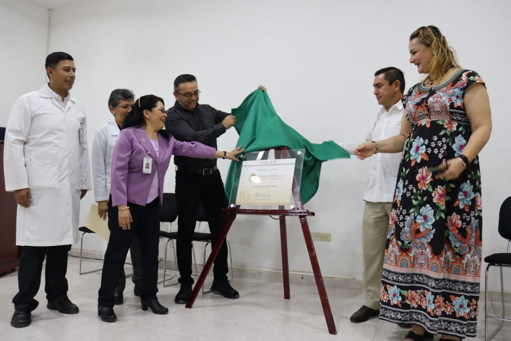 En la ceremonia de develación estuvieron presentes integrantes del Cuerpo de Gobierno delegacional; el Secretario General del Sindicato Nacional de Trabajadores del Seguro Social, Sección VI, enfermero general Javier del Carmen Campos Rosado; la responsable de la Jefatura de Servicios de Prestaciones Médicas, doctora María José Frayre Torres; la titular de la Coordinación de Competitividad, Alejandra Albertos Dittrich y el coordinador de Planeación y Enlace Institucional, doctor Jesús Chacón Sánchez.