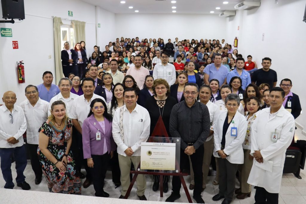 MÉRIDA, Yuc., 22 de febrero 2024.- La Escuela de Enfermería del Instituto Mexicano del Seguro Social (IMSS) en Yucatán fue galardonada por primera vez, con el Premio IMSS a la Competitividad 2023, otorgado a nivel nacional, como resultado de implementar el Modelo de Competitividad que le permite fortalecer sus procesos para brindar un mejor servicio a las y los estudiantes de Enfermería, quienes fueron testigos de la develación de la placa conmemorativa, encabezada por el titular del IMSS en Yucatán, doctor Alonso Juan Sansores Río, que reconoció el arduo trabajo del cuerpo docente y de todas y todos aquellos que conforman dicha Unidad.