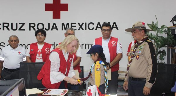 Mérida, Yucatán 22 de marzo de 2023.- Con motivo de la Semana Scout 2023 de la Asociación Nacional de Scouts Independientes, la Gacela Tadi Juliette Moreno Aparicio tomó el cargo por un día de Delegada Estatal de la Cruz Roja Mexicana de manos de su titular, Michelle Byrne de Rodríguez.