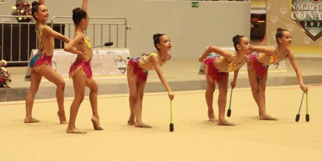 Fueron 42.800 puntos que sumaron las yucatecas; Ami Valeria Herrera Rodríguez, Ana Valentina Cabrera Ibarra, Helena García Cigarroa, Jimena Karime Chion Núñez y Mariana Magadan Sosa luego de presentar las rutinas en los aparatos de aro donde sumaron 22.200 puntos y en clavas 20.600 tantos.