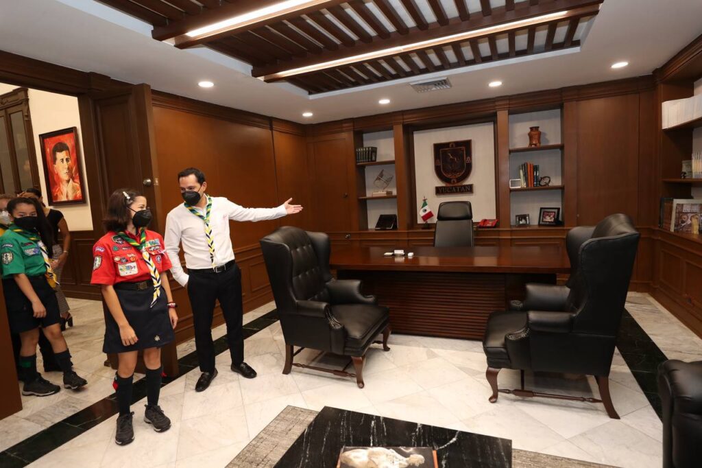Tras el acto, Vila Dosal y la joven escultista realizaron un recorrido por el Palacio de Gobierno en donde visitaron el Despacho del Gobernador, la Secretaría General de Gobierno y el Salón de la Historia en donde admiraron los murales del pintor yucateco, Fernando Castro Pacheco.