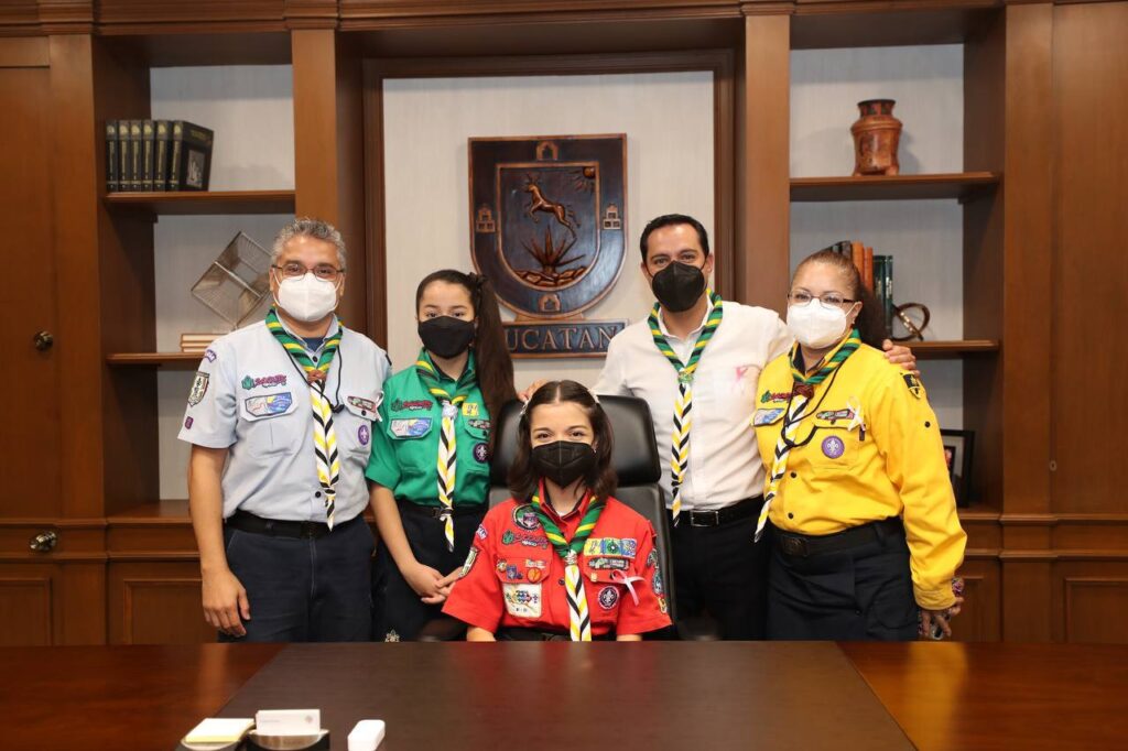 Mérida, Yucatán, 19 de octubre de 2021.- En reconocimiento a su labor de promover la conservación de la tortuga marina y proteger el hábitat de esta especie, la joven scout, Andrea Paola López Bautista, asumió este día el cargo de Gobernadora por un día, en una ceremonia que encabezó el Gobernador Mauricio Vila Dosal y que se realiza en el marco de la Semana Scout 2021.