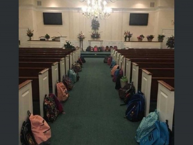 El doctor Brad Johnson compartió fotos de las mochilas y de los colegas maestros de Waddell, que se desempeñaron como portadores honorarios del féretro en el funeral.