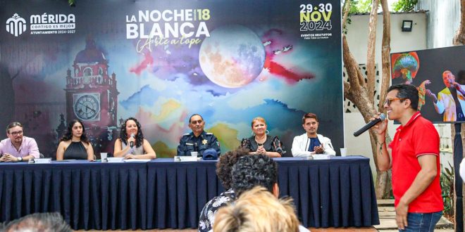A la presentación asistieron Agustín Casares Sánchez, productor del proyecto Icónica Cumbia Pop y Alex Soberanis León, del proyecto Ave Delta. La cartelera completa de actividades se puede consultar en https://www.merida.gob.mx/nocheblanca/