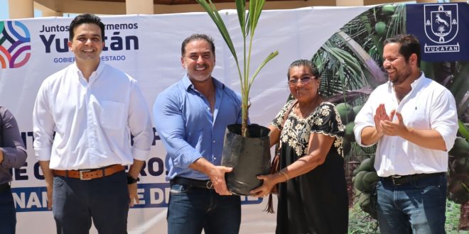 Acompañado del secretario estatal de Desarrollo Rural, Jorge Díaz Loeza, el diputado Erik Rihani González y servidores públicos municipales, el primer edil agradeció esta acción al titular de la SEDER y resaltó la importancia de la producción de coco como motor de desarrollo para los productores de la región. “Estamos aquí para respaldar a los productores, brindándoles recursos, con el apoyo del Gobierno del Estado, para que puedan mejorar sus condiciones de vida. El coco es un cultivo de gran relevancia para nuestro municipio y para todo Yucatán, no solo porque contribuye con el desarrollo turístico y gastronómico de la zona sino también por ser una fuente de ingresos para las familias de nuestras localidades”, afirmó.