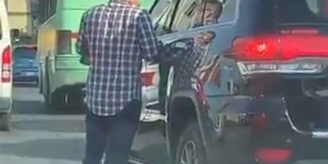 Un video difundido en redes sociales muestra al asaltante, vestido con jeans y camisa a cuadros, parado junto a la puerta del conductor a quien amaga con un arma de fuego.