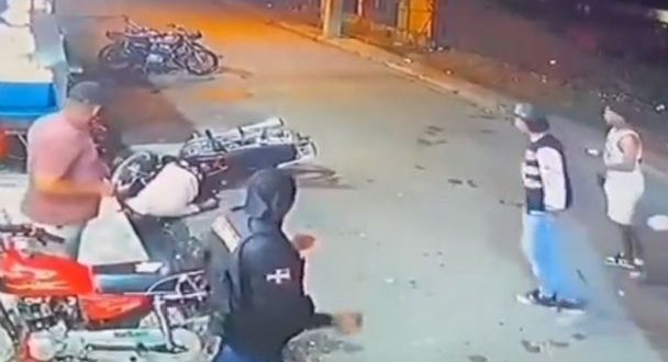En redes sociales se divulgó el momento en que un presunto delincuente que se disponía a robar a un grupo de personas mata de manera accidental a su cómplice. El incidente fue registrado en República Dominicana recientemente.