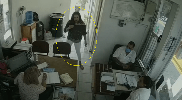 Las cámaras de vigilancia de la caseta de administración del fraccionamiento ubicado en Colinas del Saltito, en Durango, captaron el momento en el que la mujer se acerca a los vigilantes para reclamarles por el hecho de negar el paso a la unidad.