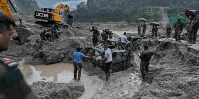 Al menos 14 personas murieron y 102 siguen desaparecidas debido al devastador desbordamiento de un lago glaciar que provocó inundaciones en el noreste de India, donde siguen las labores de búsqueda de los rescatistas, informaron este jueves las autoridades.