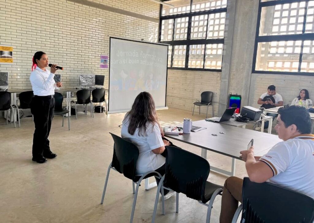 Por lo anterior, en días pasados, elementos de Prevención del Delito ofrecieron una “Jornada Formativa para Docentes” a maestros de la Secundaria Estatal Comunidad Educativa Bailleres con la finalidad de que cuenten con elementos que les permitan hacer frente y manejar con éxito cualquier tipo de violencia entre los alumnos.