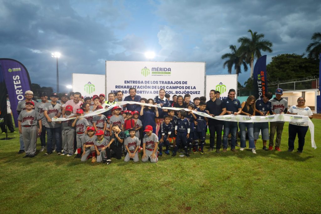 Acompañada de vecinas y vecinos de la zona y representantes de los equipos Diablitos y Lobos de la Bojórquez, la alcaldesa destacó que este espacio, gracias al compromiso de la administración municipal que escucha y atiende, hoy es un lugar más digno y seguro para las familias meridanas.