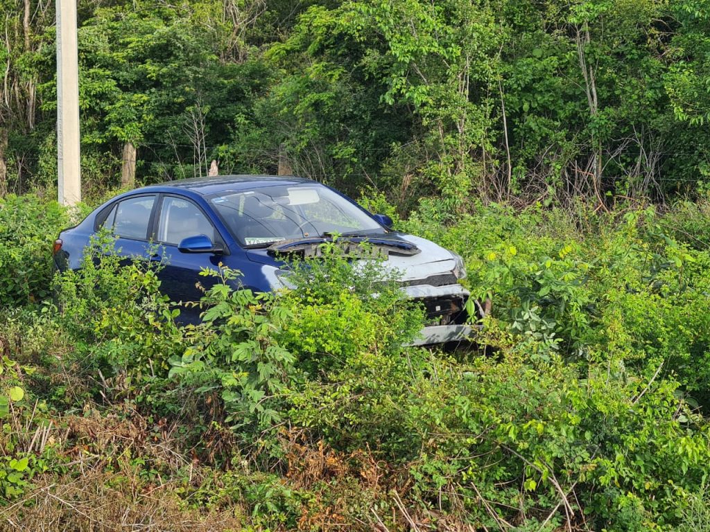 En esta ocasión el guiador de un Kia Rio, que se salió de camino y avanzó varios metros en la maleza luego de que se pincho un neumático.