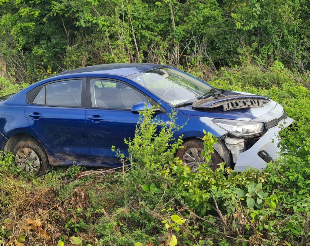 En esta ocasión el guiador de un Kia Rio, que se salió de camino y avanzó varios metros en la maleza luego de que se pincho un neumático.