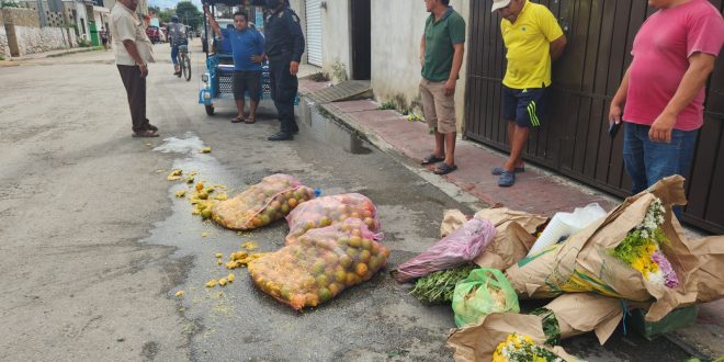 El hecho curioso que puso los pelos de punta de doña “Rosa” ocurrió esta tarde en la calle 20 entre 25 y 27 de Kinchil, cuando al bajar sus ramos de flores y mandarinas a un costado de la calle, se dispuso a caminar unos metros para pedir un mototaxi que igual estacionan por esa arteria. Fue entonces que un despistado conductor de un vehículo repartidor no se dio cuenta y acabó aplastando dos sacos de dicha fruta dulce. Al ver esto doña Rosa, molesta dio parte a la Policía local, ya que el guiador siguió su camino como si nada, pero fue atorado calles más adelante para que responda por los daños materiales.