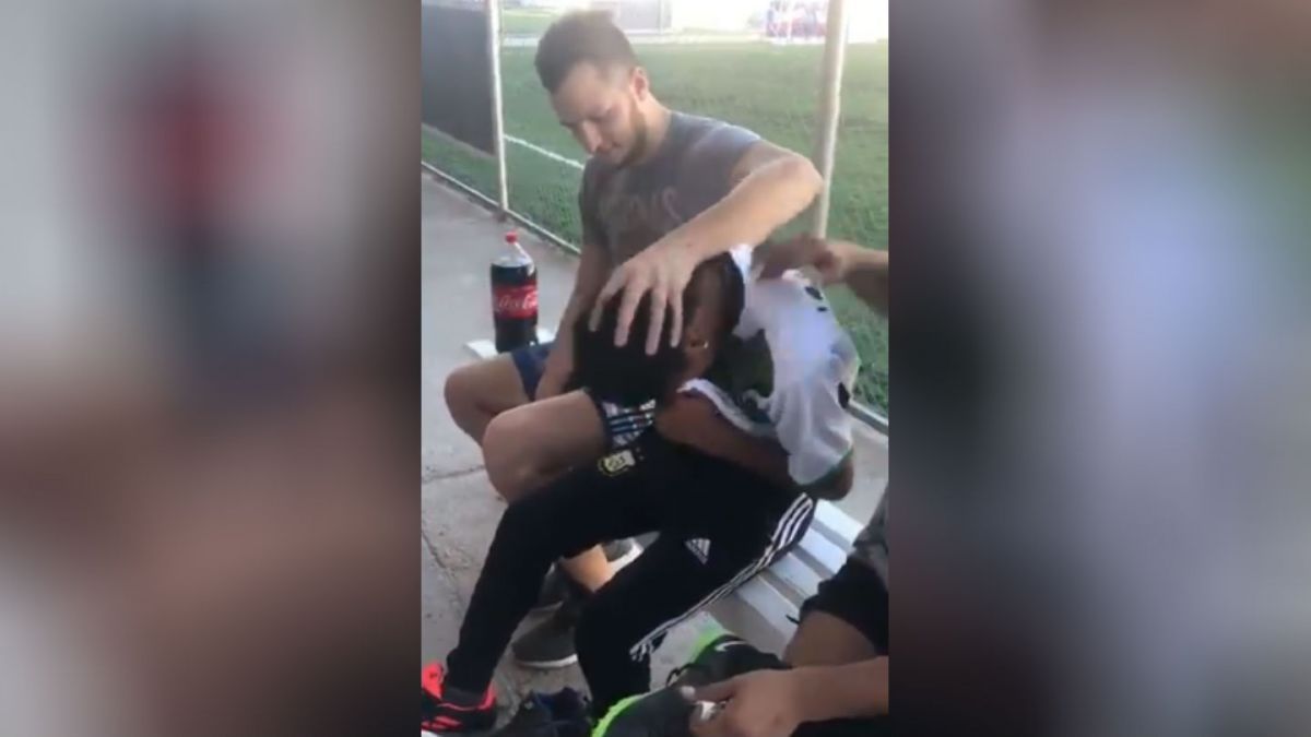 Hoy jugamos contra ellos y en el 3er tiempo pasó esto. A él lo asaltaron y le robaron los botines en la semana. Sus compañeros de equipo, le dieron esta sorpresa. Que viva el fútbol y la buena gente señores!!! pic.twitter.com/1RvzLLYdPo