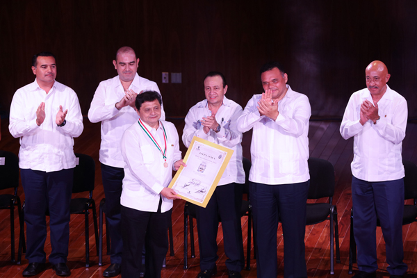 El académico recibe la Medalla que lleva el nombre del benemérito yucateco.