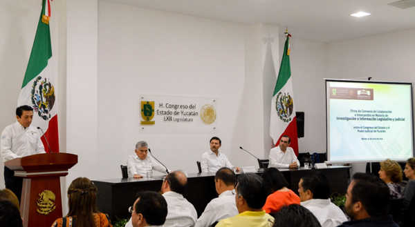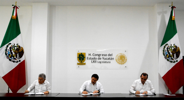 En la sala de usos múltiples “Consuelo Zavala Castillo”, signaron el documento del acuerdo el presidente de la Junta de Gobierno del Congreso estatal, Felipe Cervera Hernández (PRI); el presidente de la Mesa Directiva de la LXII Legislatura, Enrique Castillo Ruz (PRI), y el presidente del Tribunal Superior de Justicia, Ricardo Ávila Heredia, en presencia de diputados de diferentes fuerzas políticas, magistrados, consejeros de la Judicatura y personal de ambas instituciones.