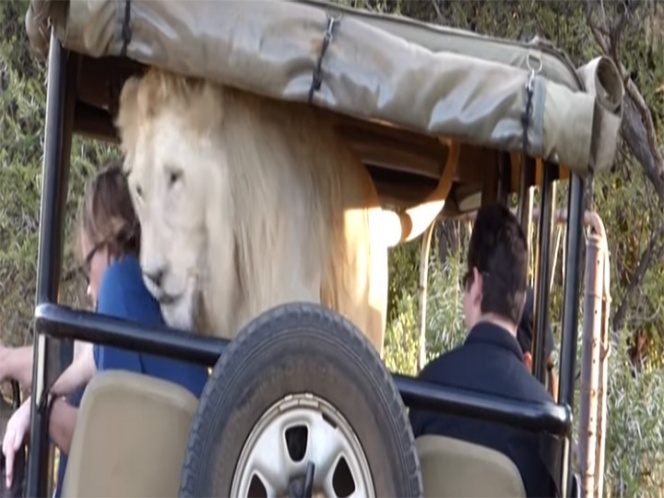 Hace unos días, el Parque Nacional de Kruger en Sudáfrica publicó en sus redes sociales el momento en el que un grupo de estudiantes se ve sorprendido por un gigantesco macho de león blanco, el cual saltó al jeep sin previo aviso.