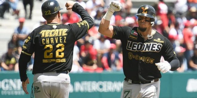 Los Leones de Yucatán detonaron cinco cuadrangulares y armaron un espectacular rally en la segunda entrada, para vencer 14-4 a los Diablos Rojos del México y ponerse a medio camino del título de la Zona Sur.
