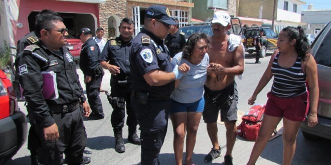 Paramédicos de la SSP atendieron a la mujer y la ayudaron a ponerse de pie, no la colocaron en una camilla, lo que molestó a los vecinos y a insistencia de los mismos curiosos la subieron a la ambulancia y trasladaron a una clínica para su atención.