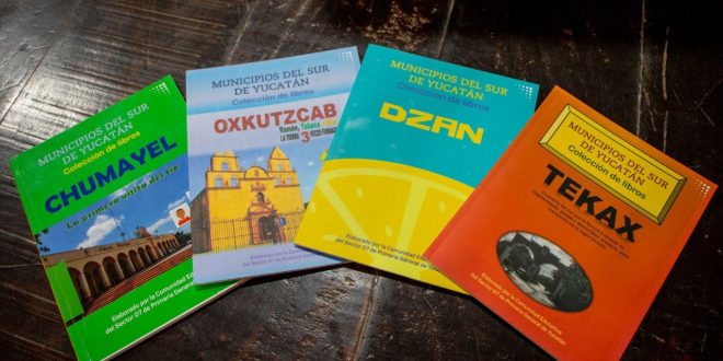 Cuevas y Lujano, destacó que los libros dedicados a los municipios Dzan, Chumayel, Oxkutzcab y Tekax, integran los saberes comunitarios que fueron aportados por estudiantes de primaria de dichas localidades.