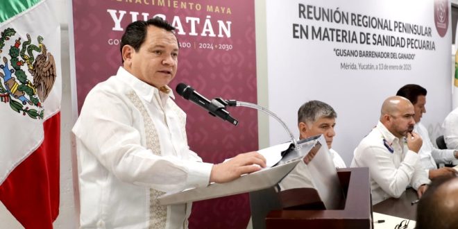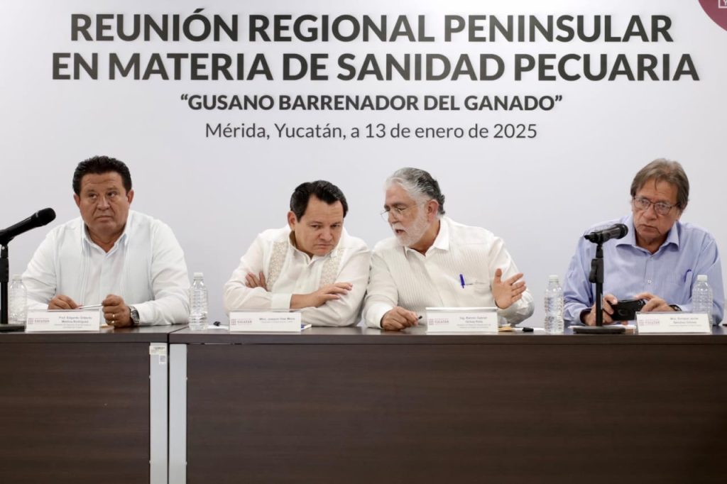 Mérida Yucatán, a 13 de enero de 2025.- En un esfuerzo conjunto para establecer estrategias en los rubros de infraestructura, operación y procedimientos que protejan y promuevan el estatus sanitario de la región, el Gobernador Joaquín Díaz Mena encabezó la primera Reunión Regional Peninsular en materia de sanidad pecuaria, con la que también se busca fortalecer las acciones contra el Gusano Barrenador del Ganado.