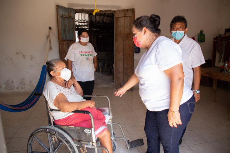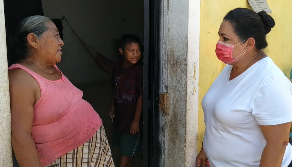 Acompañada del candidato a presidente municipal, Felipe Chan May, visitó la casa de doña María en la comisaría San Antonio Xiat, quien también le comentó sus inquietudes relacionadas con la economía por la falta de empleo, ya que ella es ama de casa y su esposo es chapeador por lo que no tiene empleo fijo, y con la pandemia cada vez lo contratan menos, lo que implica un duro golpe al ingreso familiar.
